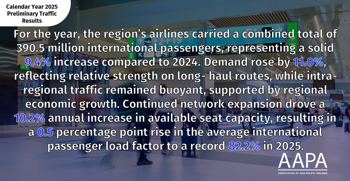 PRESS RELEASE: Asia Pacific Airlines Preliminary Traffic Results - Calendar Year 2025 - Outlook remains positive amid steady global economic growth, despite lingering risks https://shorturl.at/4eYvw
