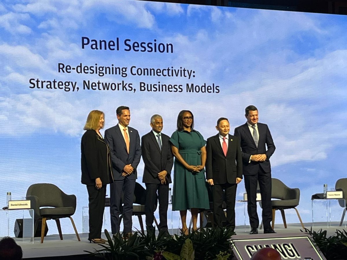 DG AAPA Subhas Menon (3rd left) with other industry leaders at the Changi Aviation Summit in a panel discussion on aviation networks and connectivity